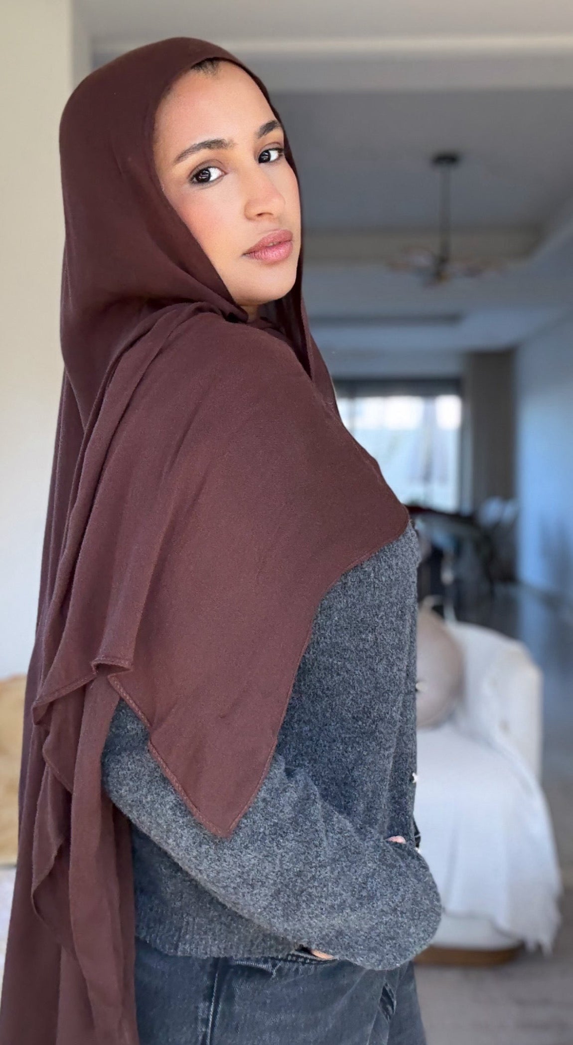 Ce hijab est confectionné à 100 % en viscose de bamboo premium, une matière fluide et légère qui offre un tombé naturel et élégant.