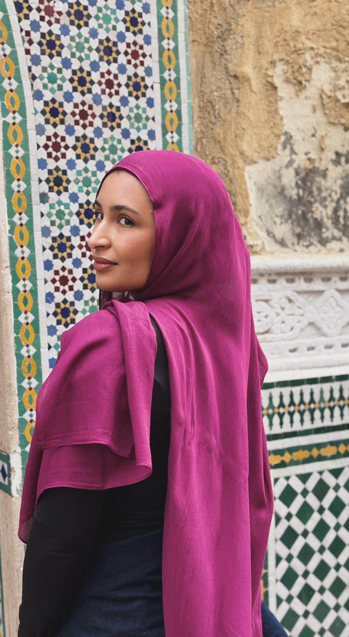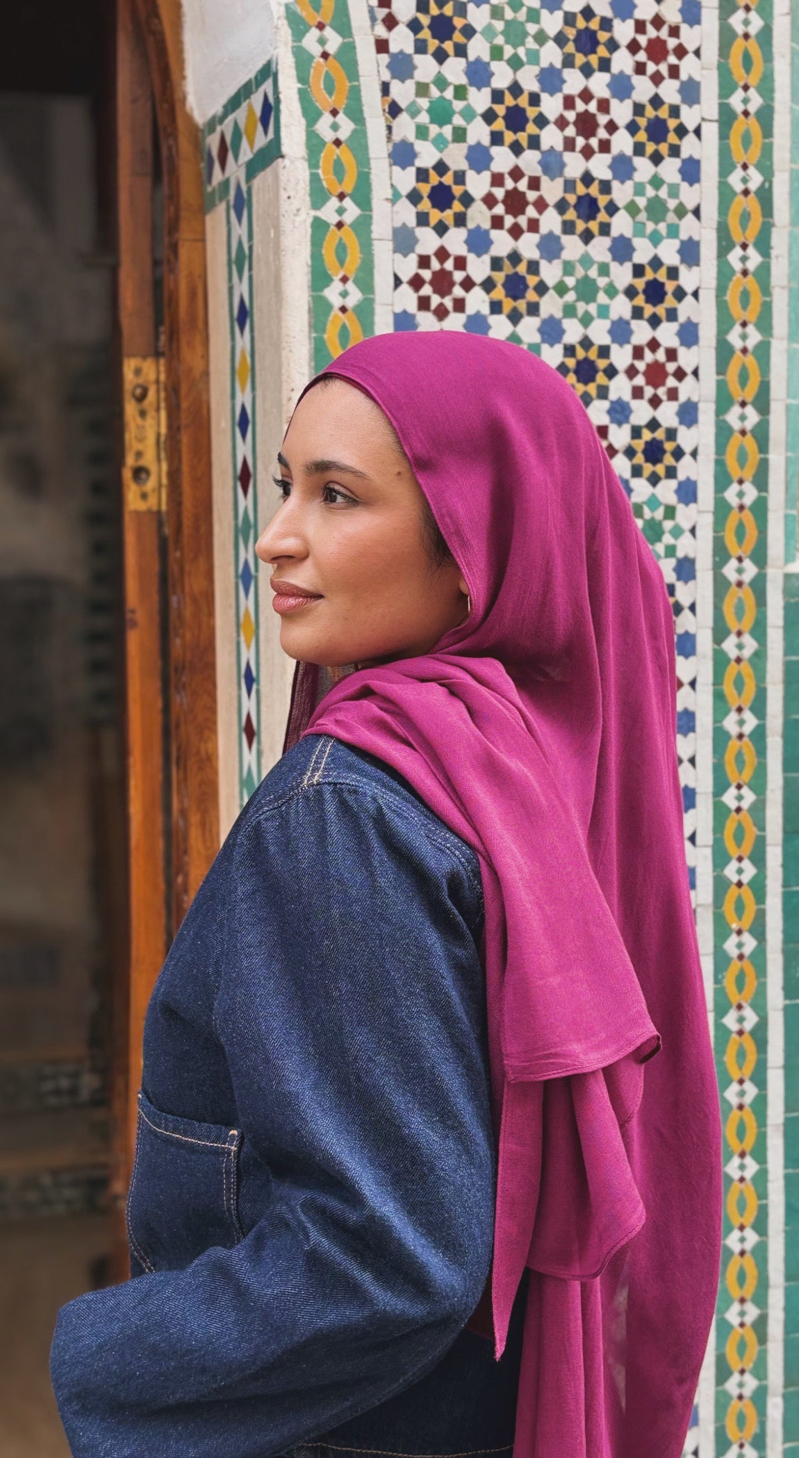 Ce hijab est confectionné à 100 % en viscose de bamboo premium, une matière fluide et légère qui offre un tombé naturel et élégant.